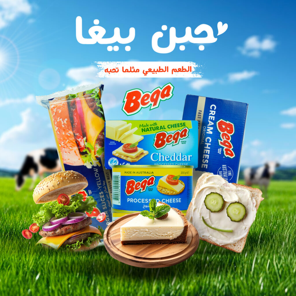 Bega Cheese Iraq, food marketing agency, FMCG marketing, MAIN Marketing Agency, digital campaign for cheese, food photography Iraq, Australian cheese marketing, social media design, food branding Middle East, Bega Cheese campaign.